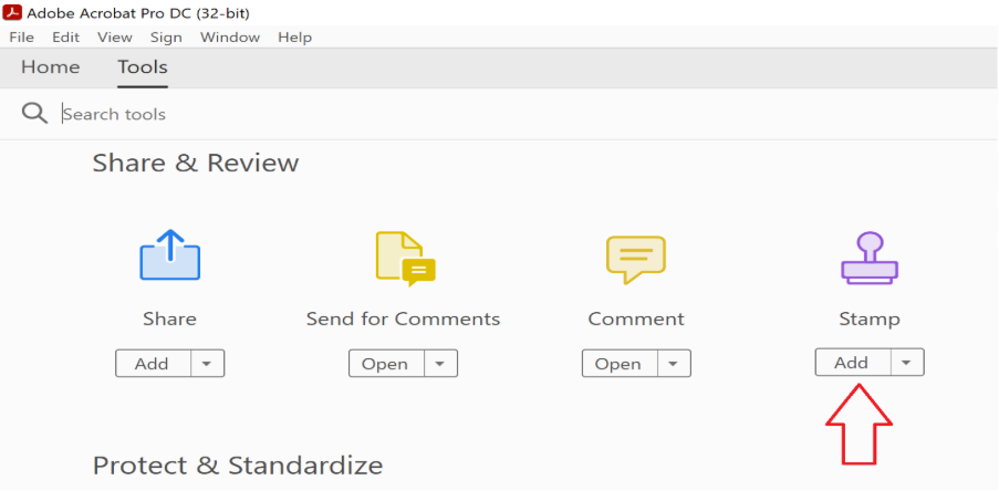 Step 3 – Scroll down half way and select “Add” on the stamp tool.
